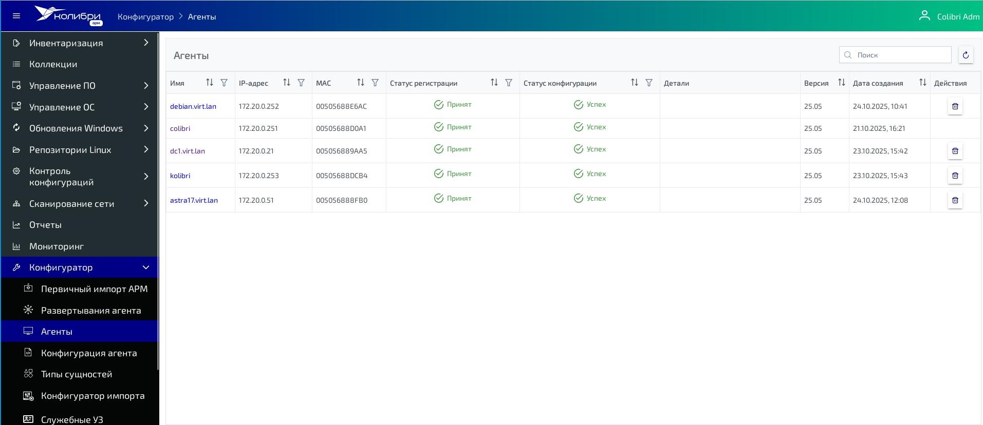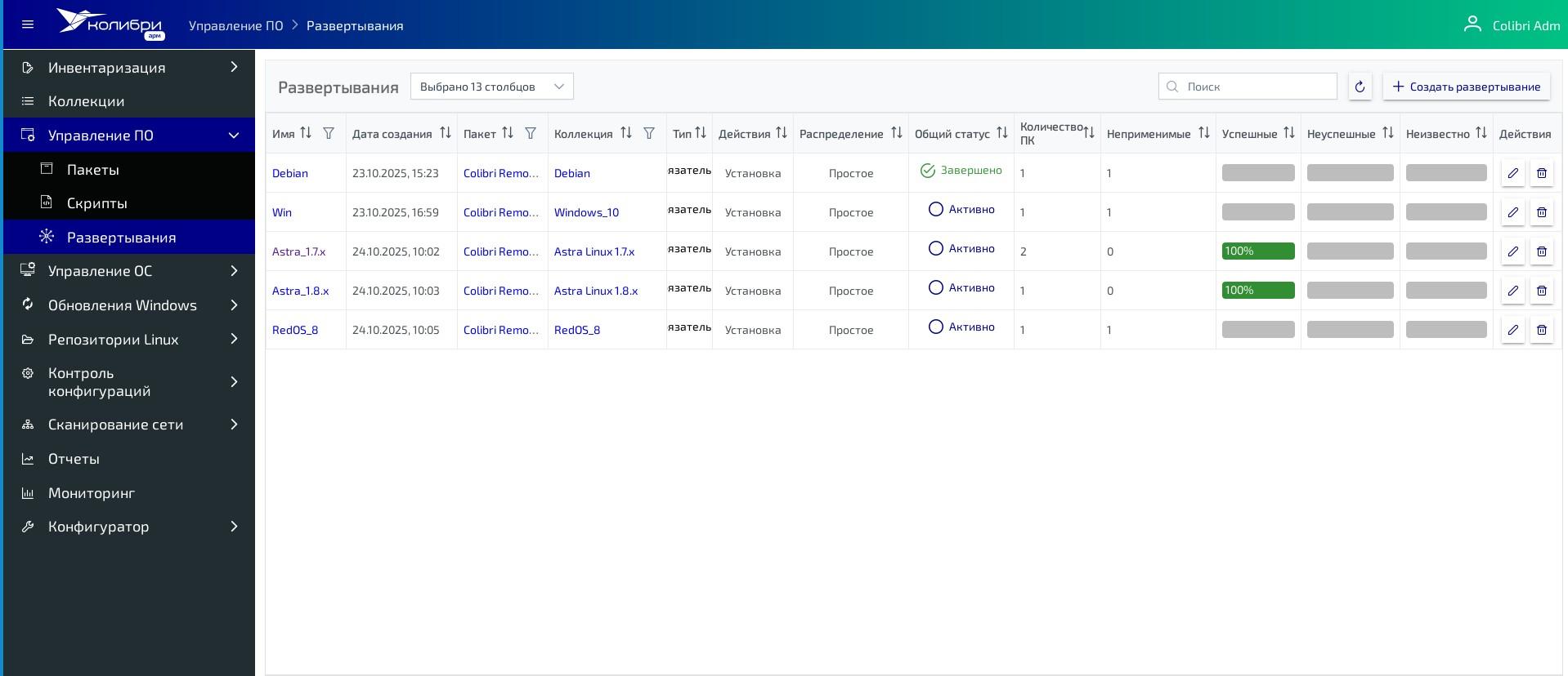 Клиентские компьютеры на Debian 13.1, Astra Linux 1.7.7, Windows 10