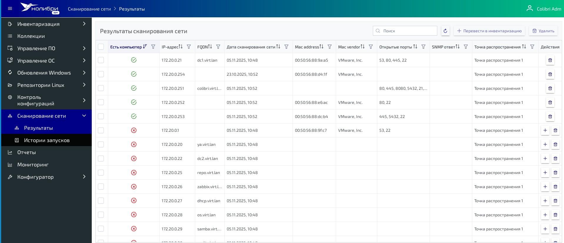 Сканирование сети на наличие новых компьютеров
