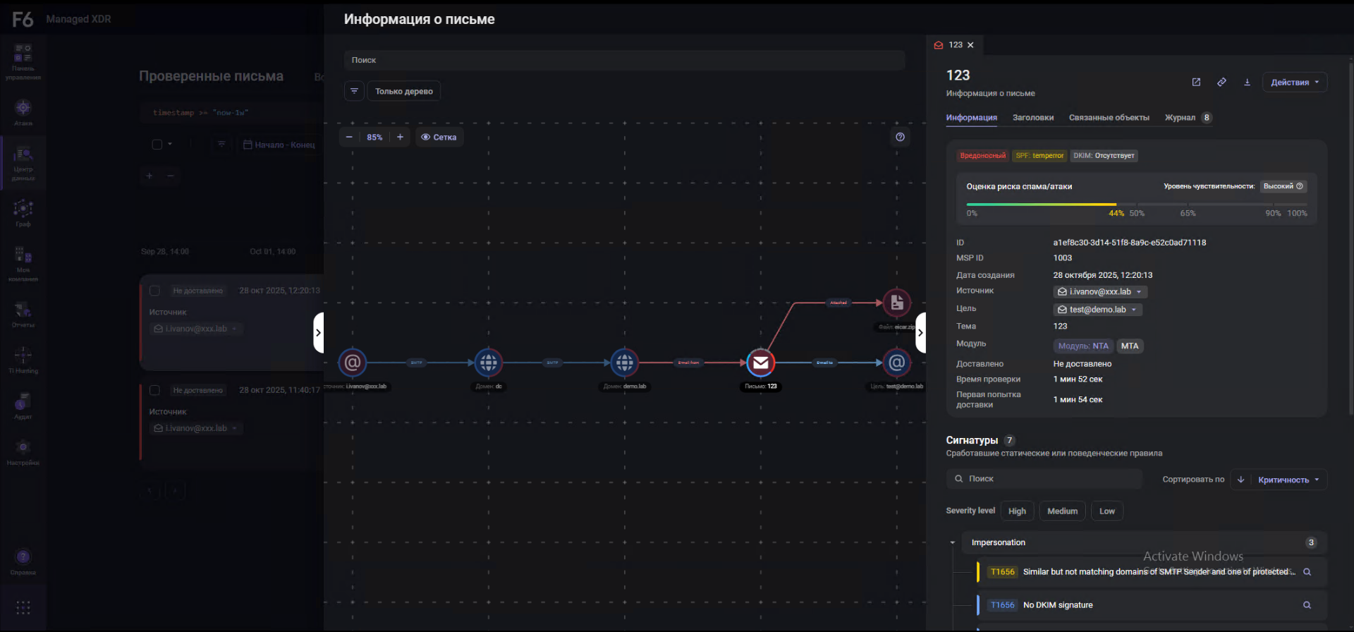 Решение обеспечивает защиту почтового трафика организации от различных угроз