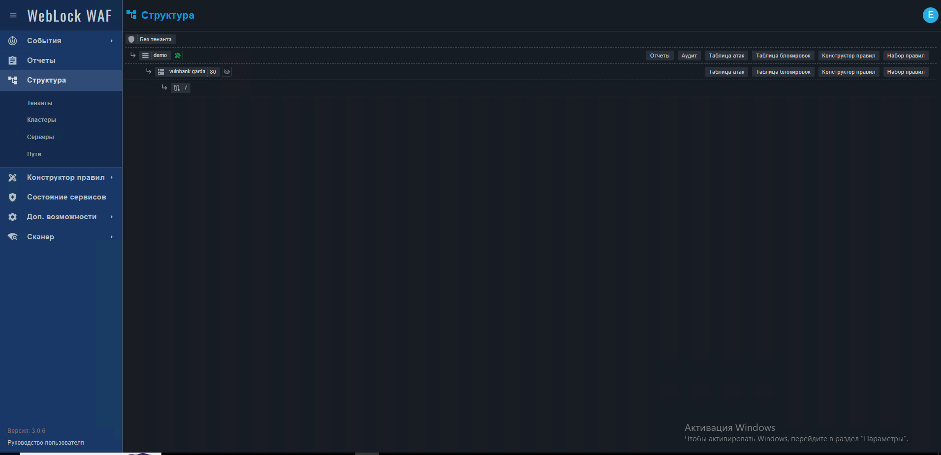 ▪ VM Garda WAF ОС: Debian 12. Архитектура: Все компоненты на одном сервере. Режим: Standalone развертывание
