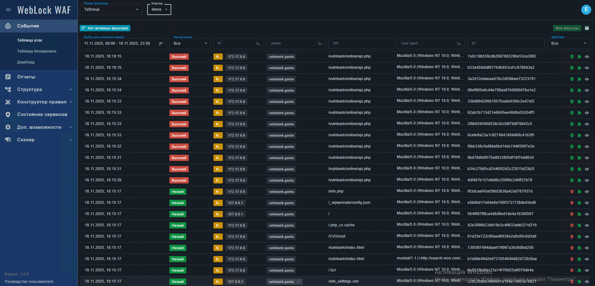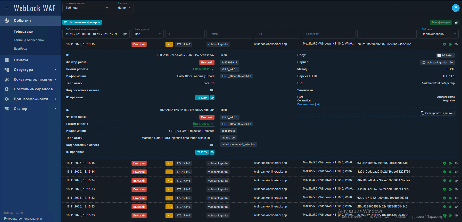 ▪ Обнаружение и блокировка OWASP Top 10 атак