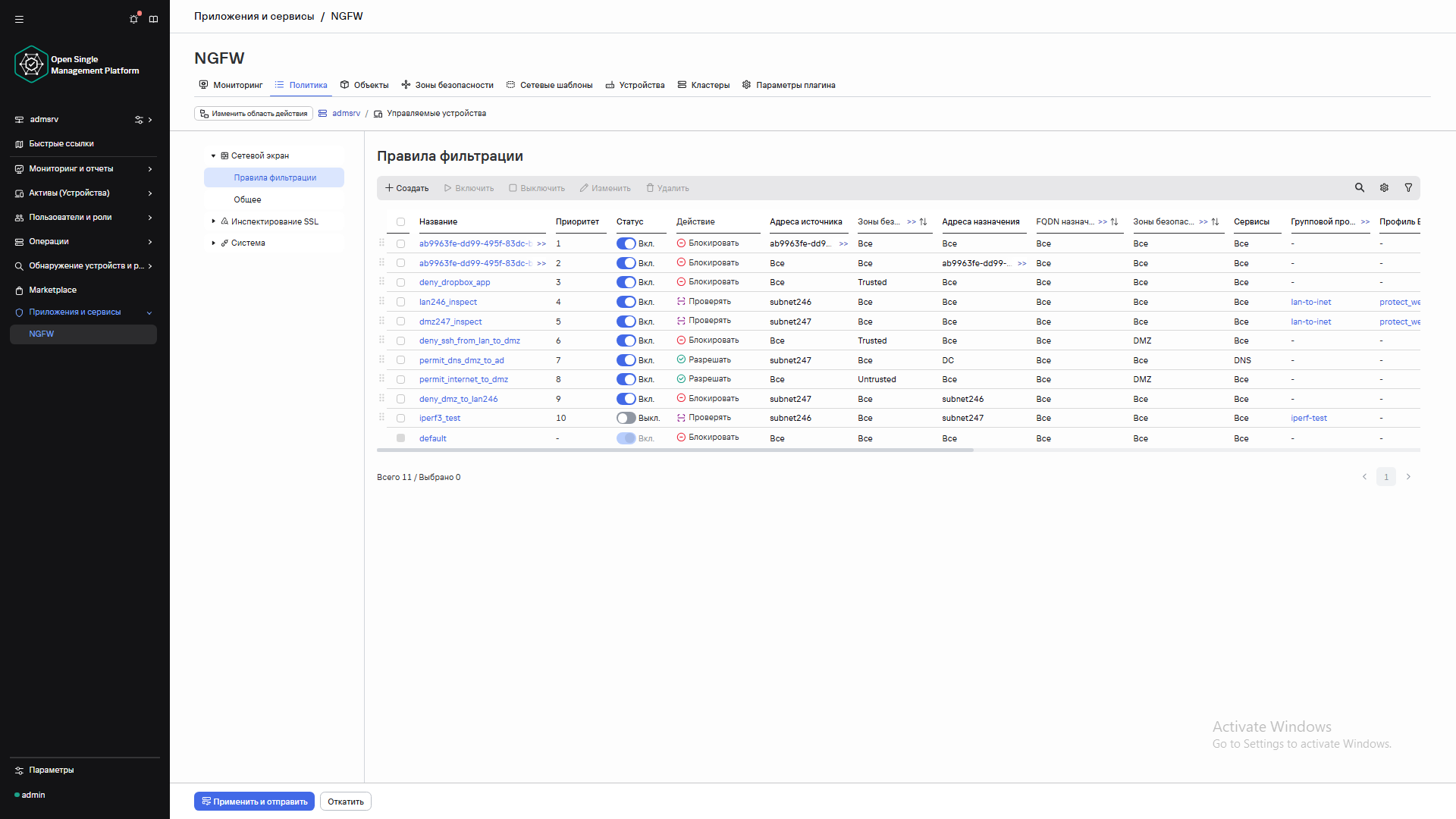 Сценарий демонстрации ▪ Демонстрация интерфейса решения ▪ Демонстрация работы правил фильтрации трафика ▪ Работа NAT-правил (Source NAT, Destination NAT) ▪ SSL/TLS-инспекция веб-трафика ▪ Демонстрация работы модуля антивирусной проверки объектов (файлы, URL) ▪ Демонстрация работы модуля контентной фильтрации в веб-трафике ▪ Интеграция с решениями KATA Platform для более глубокого анализа объектов