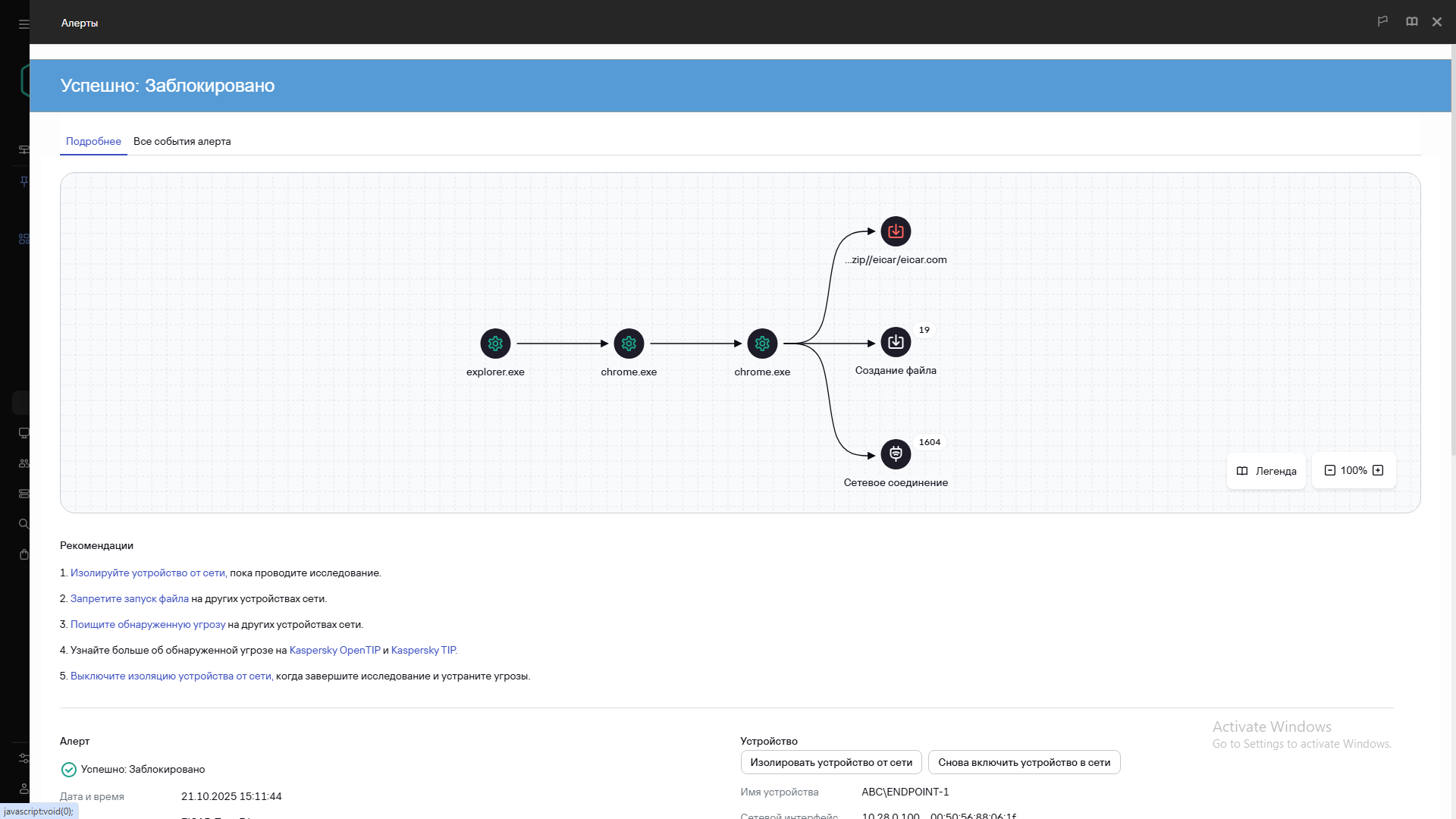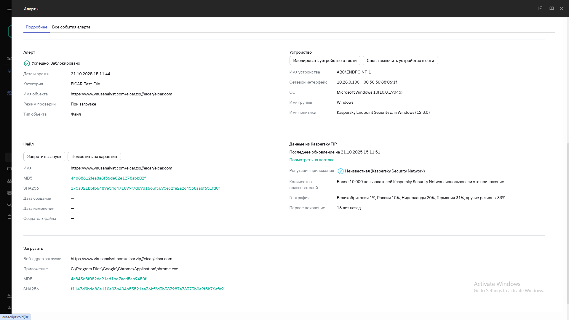 ▪ Демонстрация защиты от веб-угроз (вредоносные URL и файлы)