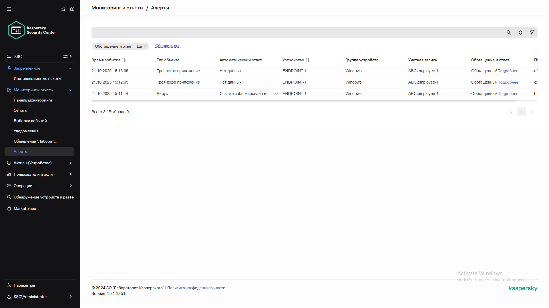 ▪ Демонстрация обнаружения более скрытых угроз средствами EDR Optimum