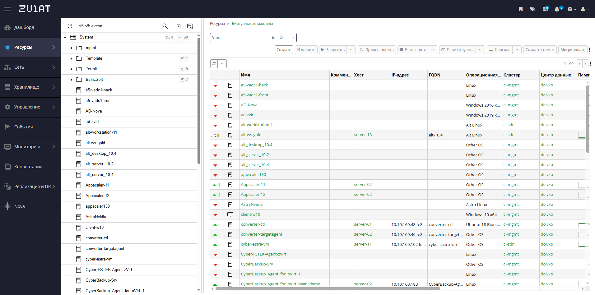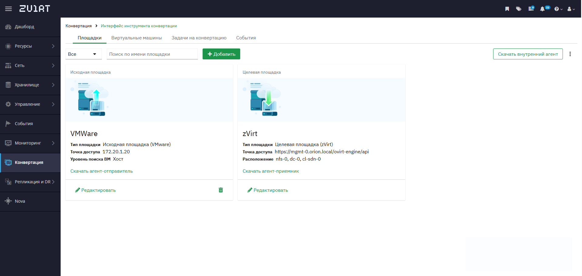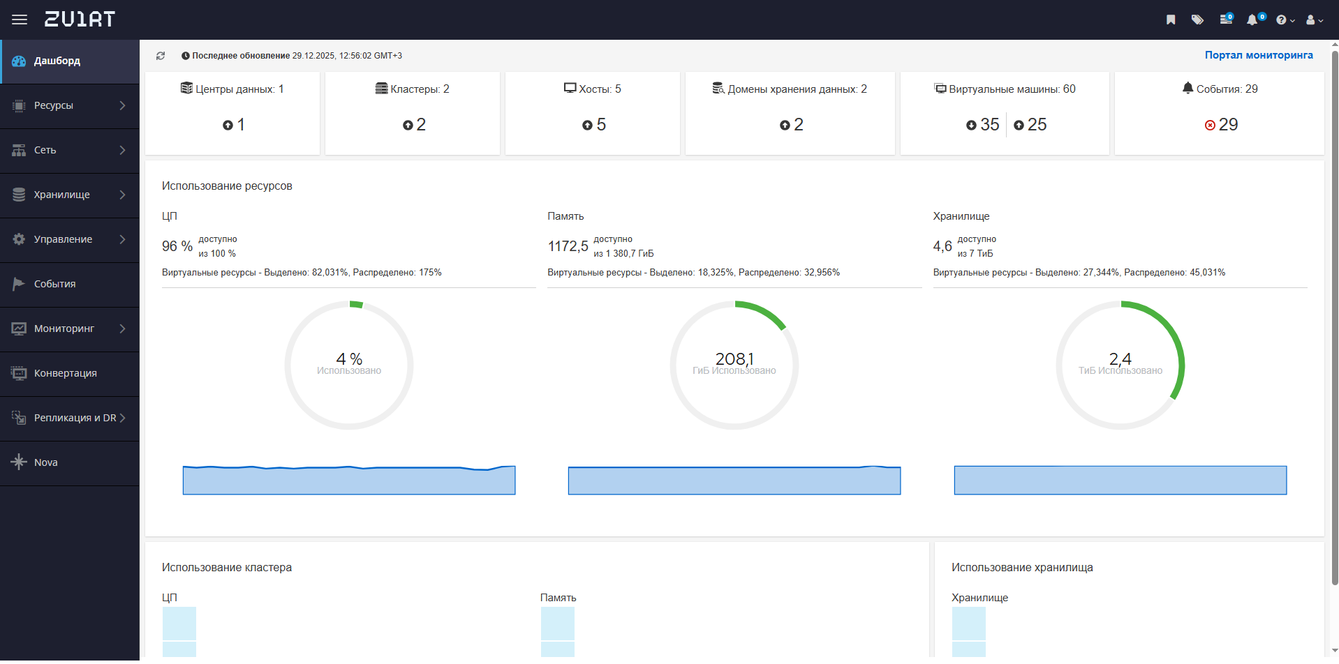 ▪ 2 центра данных и 2 Кластера zVirt